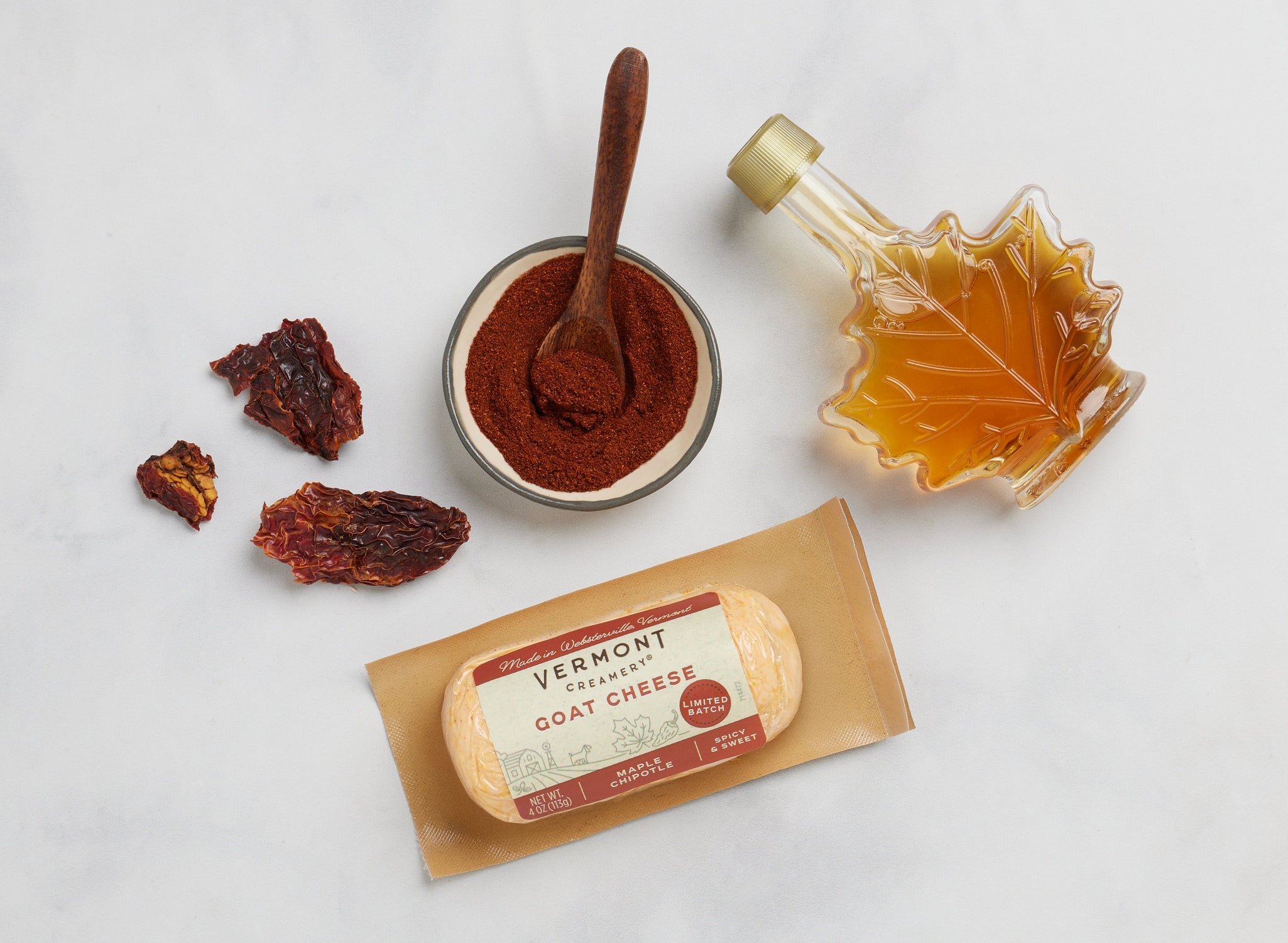 We started with our classic fresh goat cheese, bright, tangy, and endlessly versatile, then swirled in two flavors that feel like autumn in Vermont: local maple and a whisper of bright, smoky chipotle. The result is a balance of sweet and savory that makes taste buds sit up and pay attention.
