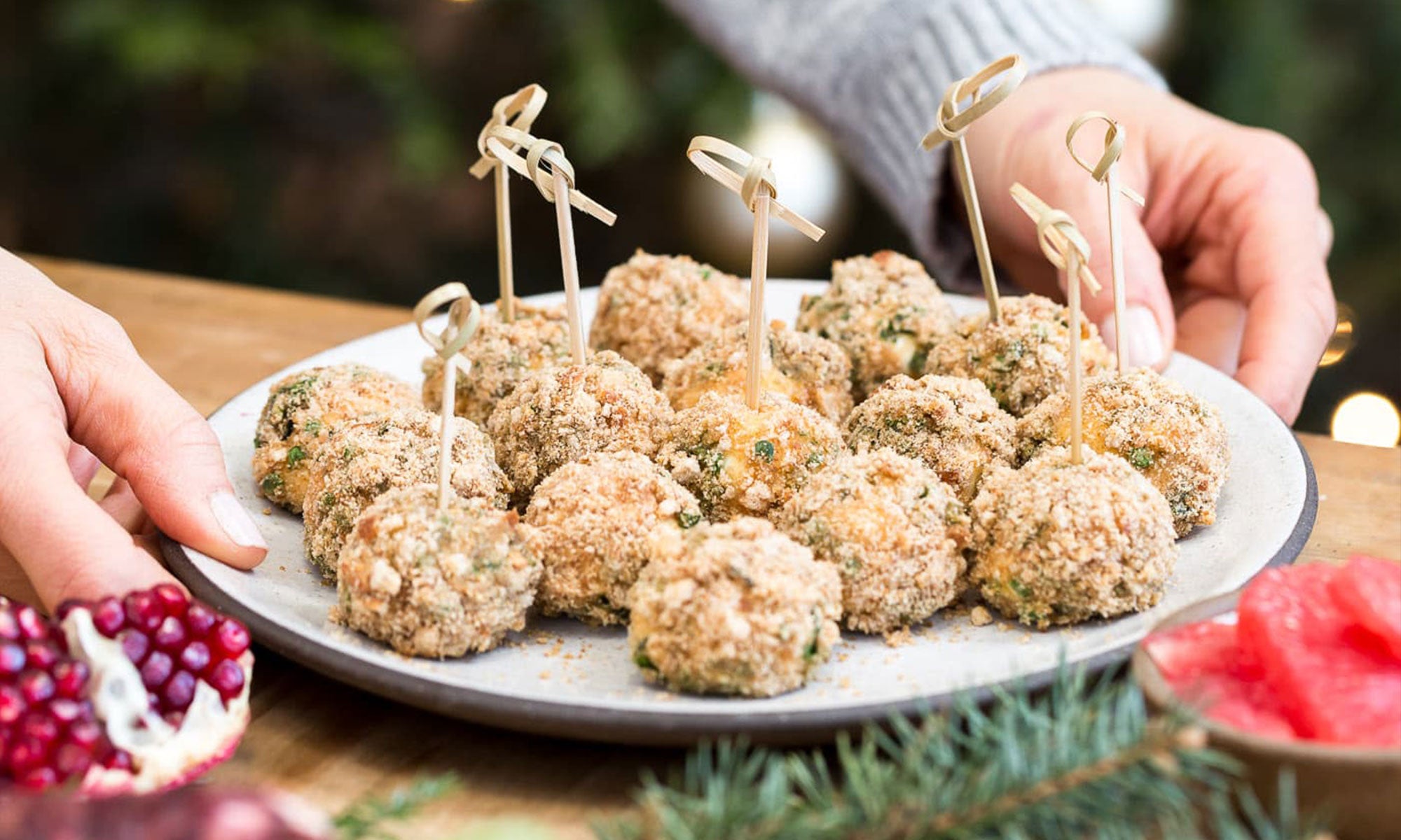 - Lightly brush goat cheese balls with olive oil. Bake 8-10 minutes or until they turn golden brown. Serve immediately.