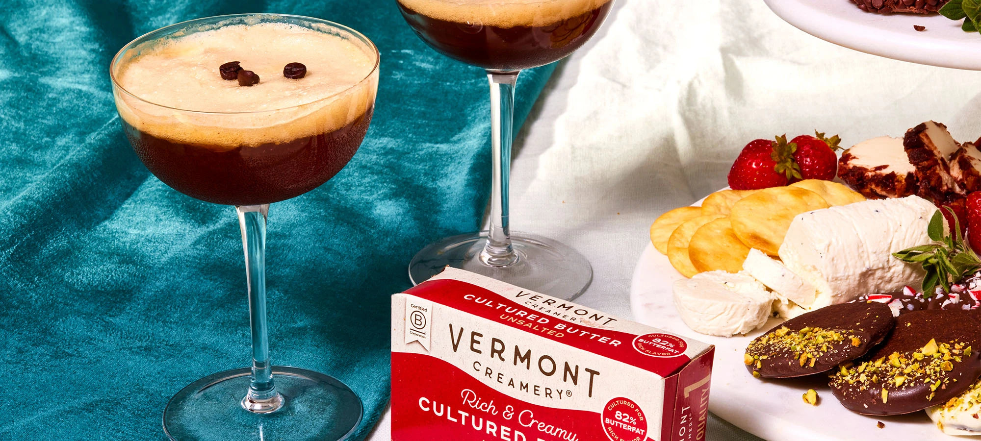 - To build each martini, add vodka, coffee liqueur, butter syrup, and espresso to a cocktail shaker. Fill the shaker with ice and shake vigorously for 20 seconds.