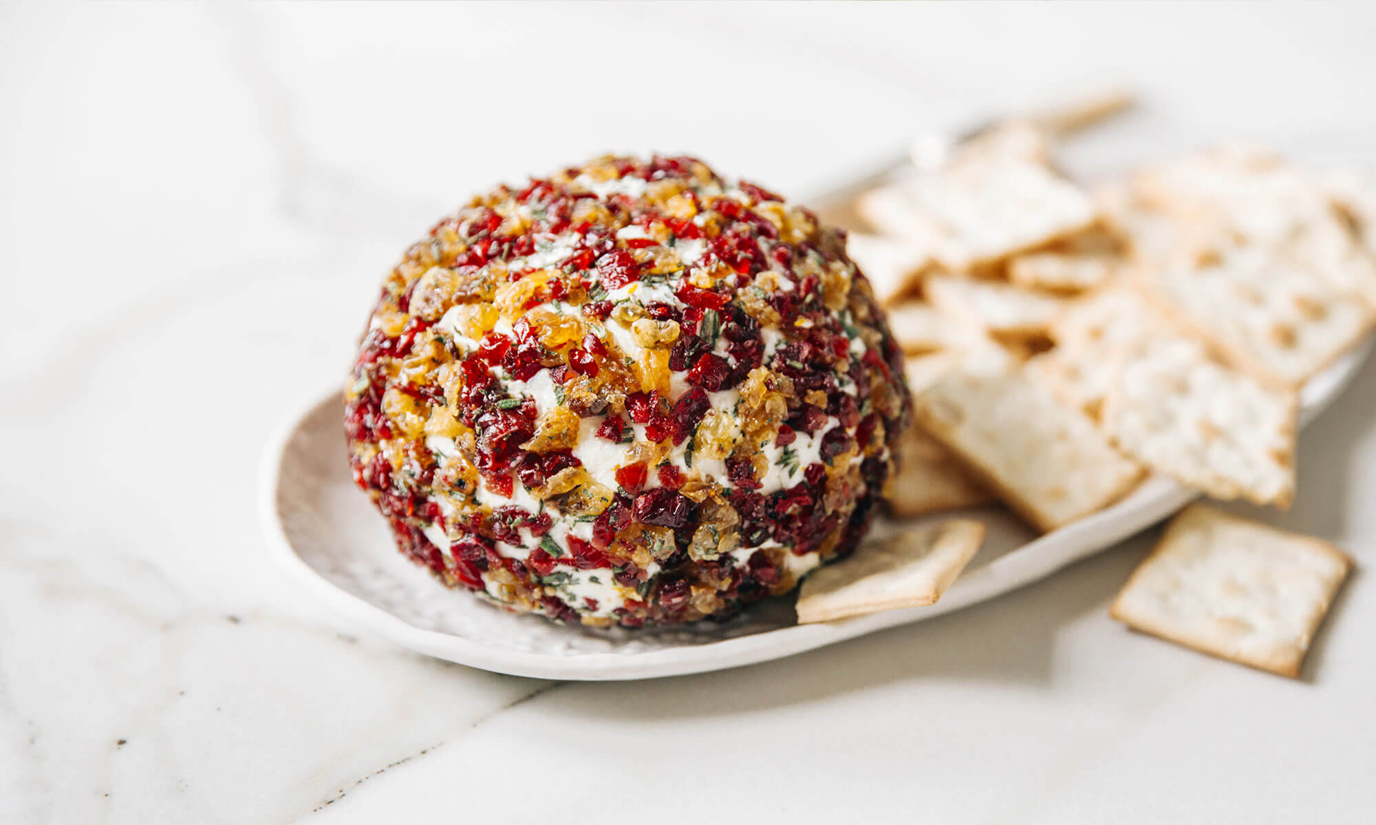 - Mix rosemary, golden raisins and cranberries on large plate; stir to combine. Gently roll cheese ball into chopped fruit and herbs, pressing fruit and herbs lightly into ball to form even layer. Serve on platter alongside crackers or pita chips.