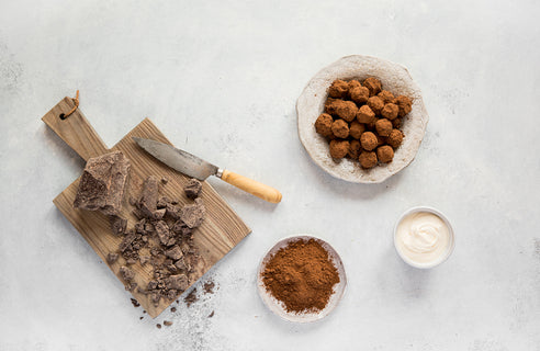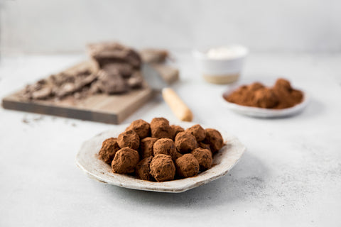 - Place cocoa powder into small bowl; roll each truffle in cocoa powder to coat