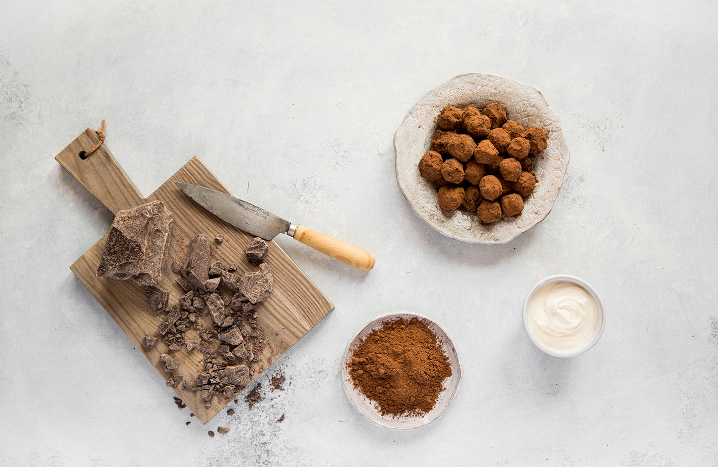 - Shape chocolate mixture into balls by rolling teaspoon of mixture in palm of your hand. Place chocolate balls onto parchment-lined baking sheet