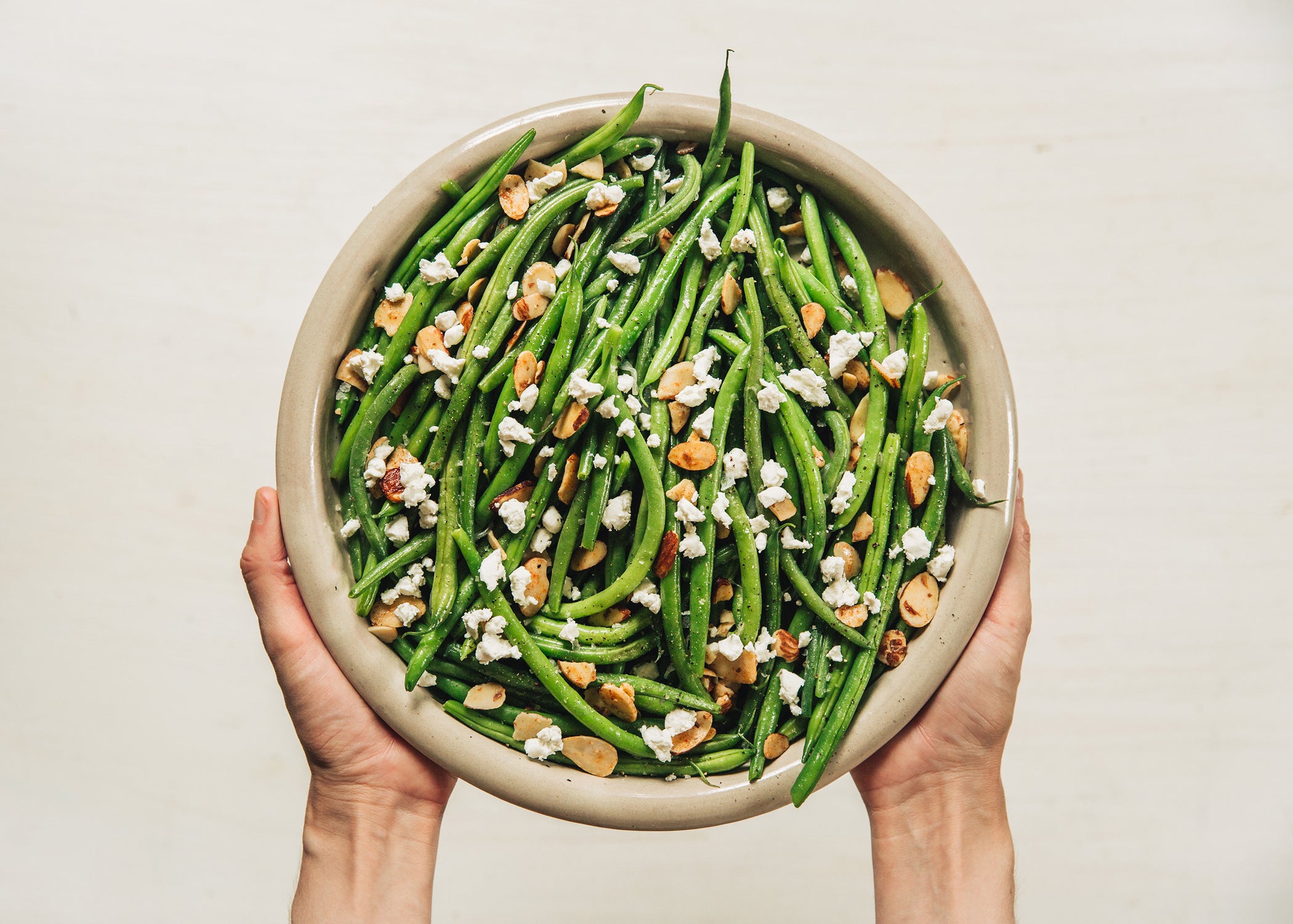 Green Beans with Candied Almonds and Fresh Goat Cheese