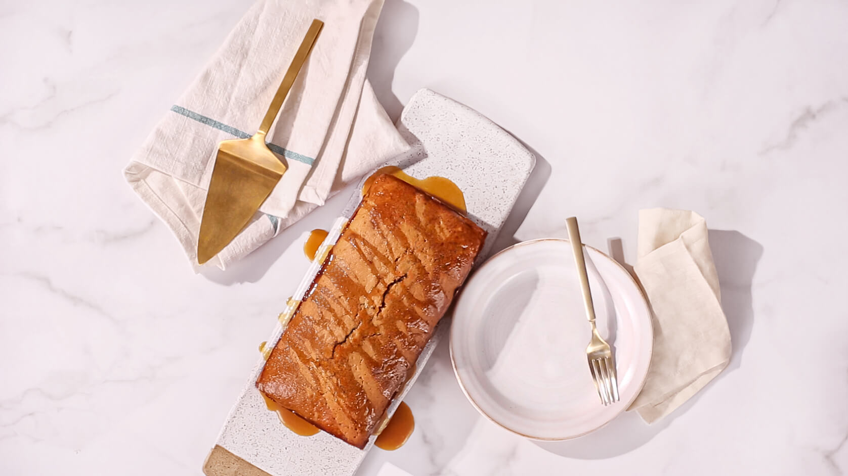 - Once cooled, transfer to a platter and give the cake a generous drizzle of the maple caramel.