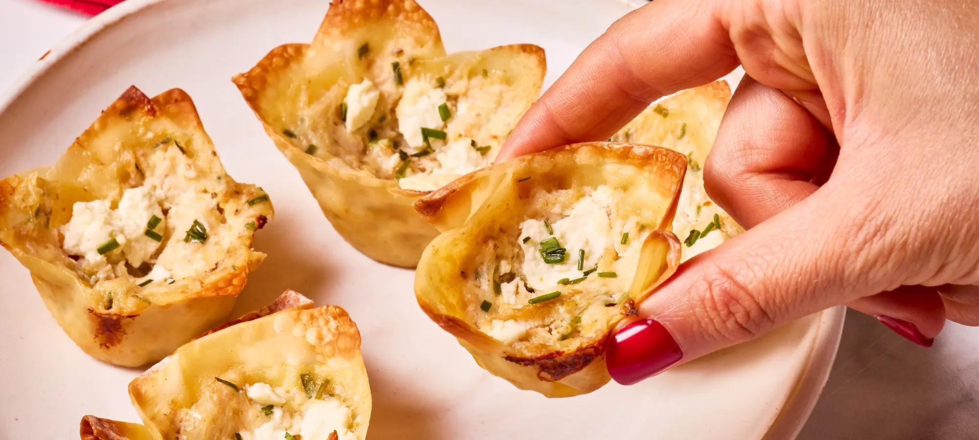 - Divide crab mixture evenly among wonton cups and loosely cover with foil. Bake for 10 minutes or until filling is cooked through.