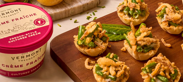 Mini Green Bean Casserole Bites with Crème Fraîche