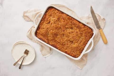 - Combine all streusel ingredients in medium bowl. Use your fingers to pinch ingredients together to form crumbs; set aside.