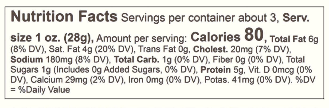 Pasteurized Cultured Milk, Salt, Enzymes. CONTAINS: Milk