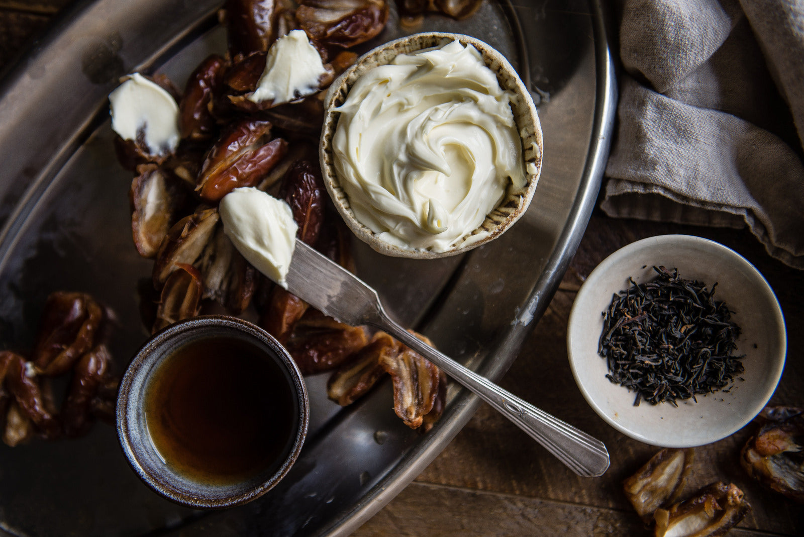 - Place dates in medium bowl; pour black tea over dates. Let stand 5 minutes; drain. Serve dates with mascarpone for spreading.