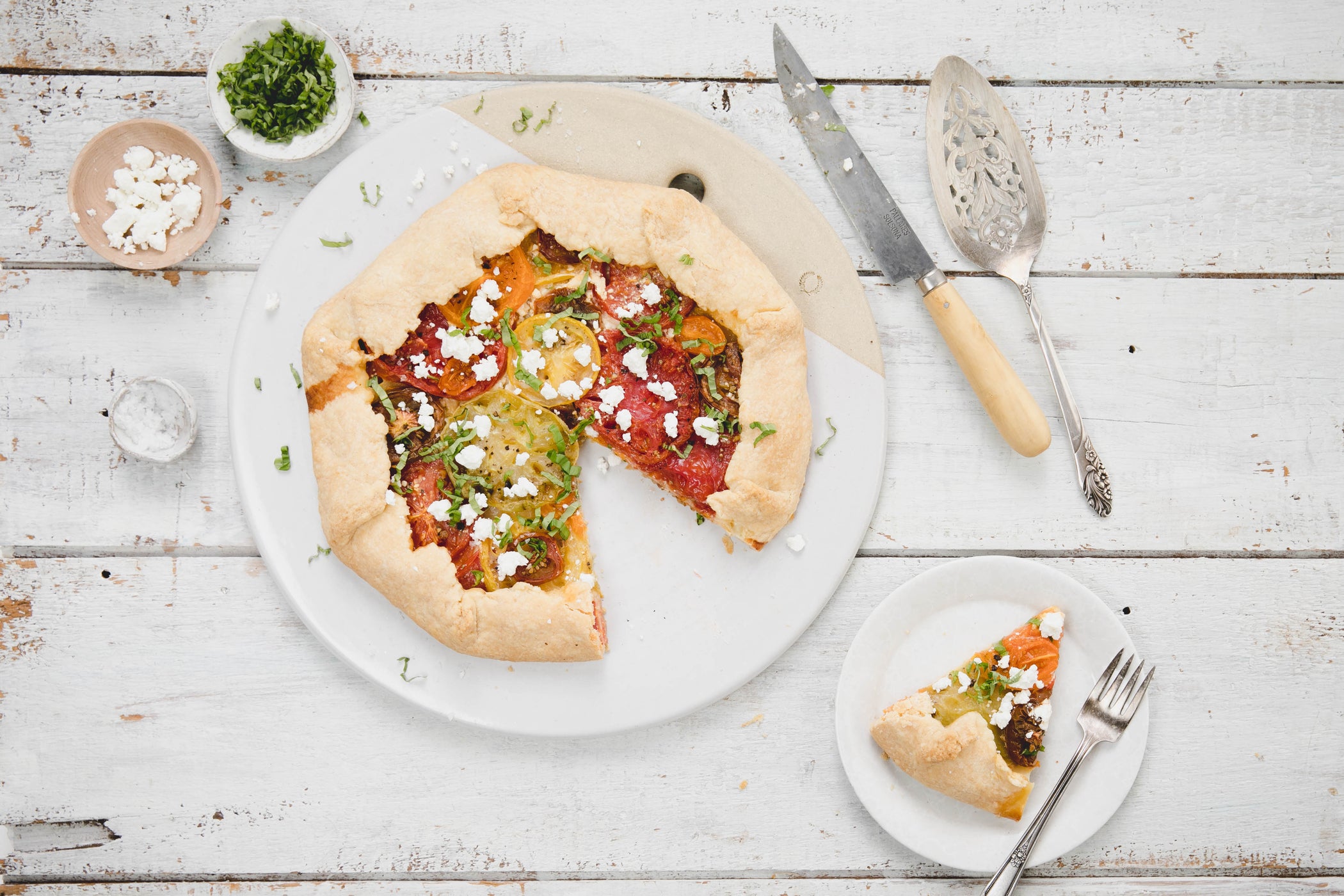- To serve, sprinkle remaining crumbled goat cheese and freshly chopped basil over galette. Cut into thick wedges.