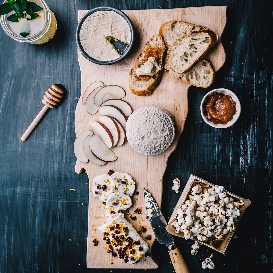 - Jordan garnished a fresh goat cheese log with cranberry and orange essence, but you can always buy our pre-rolled cranberry, orange, and cinnamon chèvre for ease. Use up-cycled aged cheese containers like our Bonne Bouche crate as a vessel for popcorn, crackers or nuts like Jordan did.
